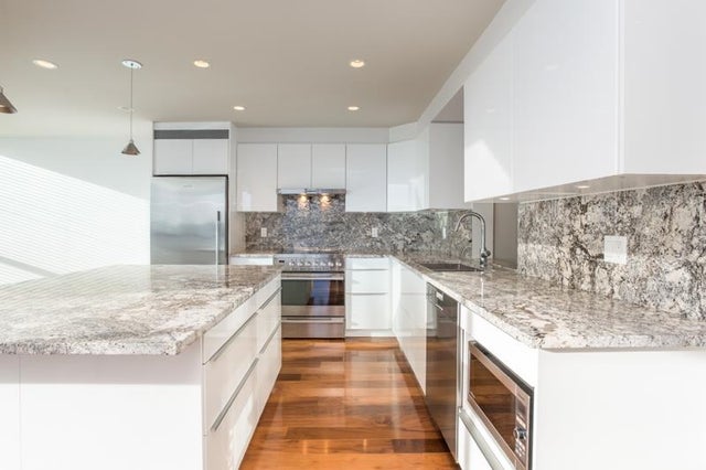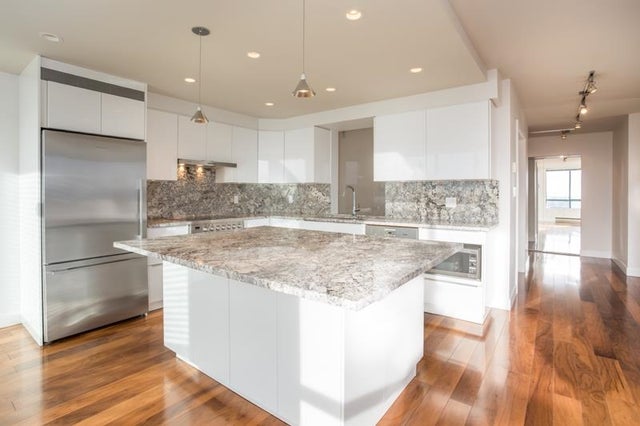 Located in the heart of New Westminster's Uptown area, in a Bosa built, well manage concrete building. Walking distance to shopping and sky train. This beautifully updated, open floor plan, 2 bedroom, 2 bath, plus den and separate laundry room home, features south west views of the Fraser River, engineered walnut floors, porcelain tile, wool carpets. The kitchen has granite counter tops, and large island with seating for four, Fisher & paykel, fridge, stove, hood fan and Miele dishwasher. Both stunning bathrooms have been beautifully renovated as well. There is one parking space and one large storage locker. A heat pump has just been added to the home for your year round comfort regardless of how hot or cold it is outside!