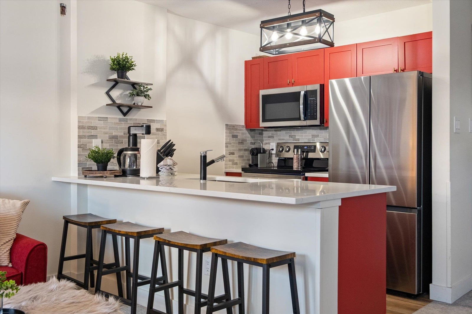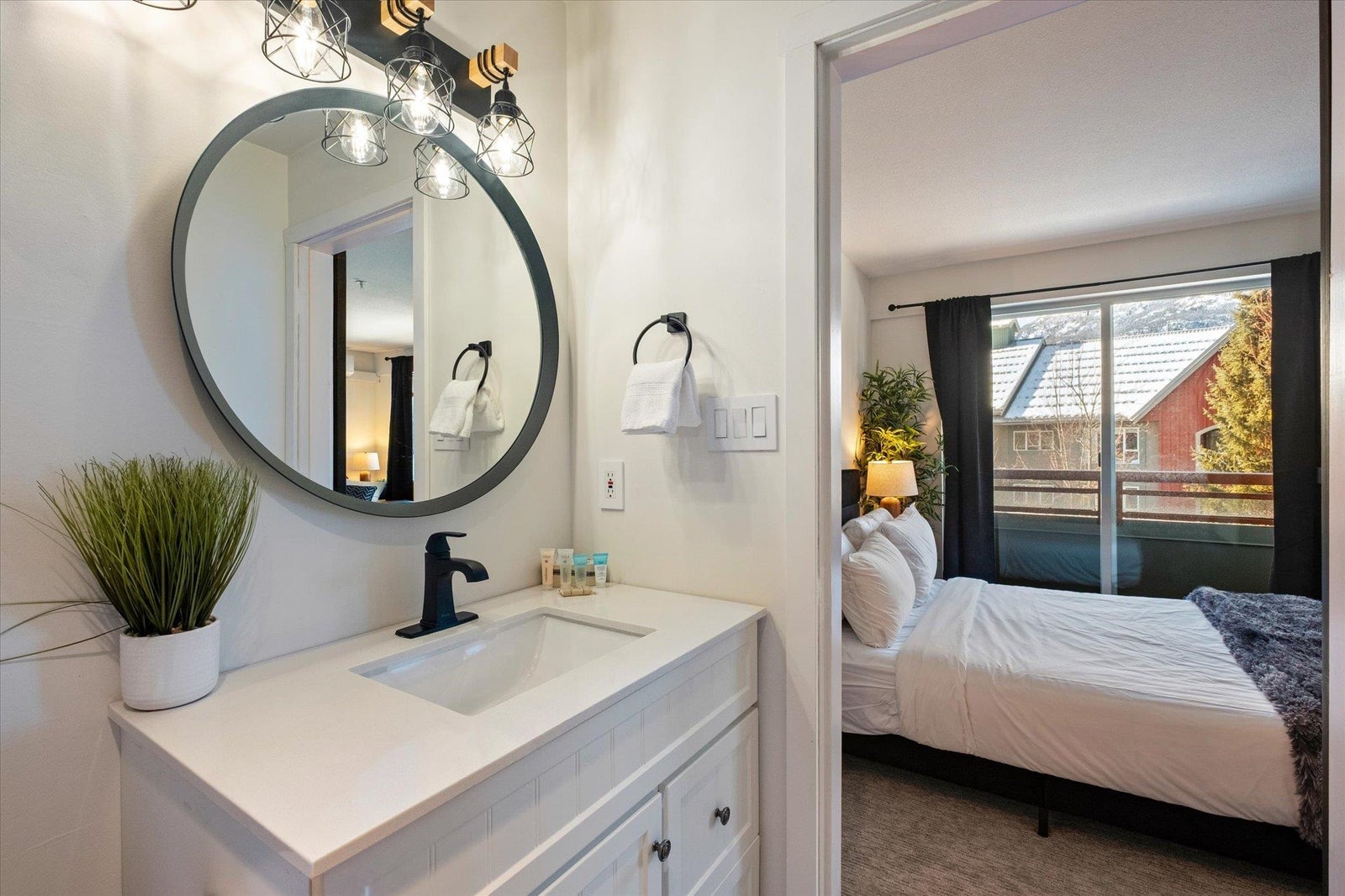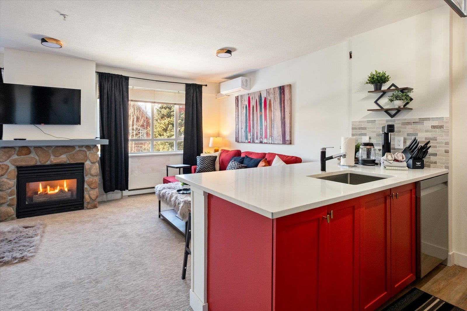 Prime Whistler Village location, this cozy beautifully furnished turnkey condo is located in Town plaza’s Eagle Lodge and sleeps 4. This suite just went through a full interior renovation, featuring a full kitchen with new appliances, in-suite laundry, gas fireplace, sofa bed, new furniture and a west facing Romeo and Juliet balcony. Town plaza has a full service front desk, secure underground parking, ski locker, common area hot tub and exercise room. Flexible zoning allows for full time use, nightly or long term rentals. Enjoy the convenience of being just steps to the Olympic Plaza, village shops, restaurants and a short walk to the Whistler and Blackcomb Gondolas. Strata fees include hot water, electricity, cable, internet, natural gas and front desk services.